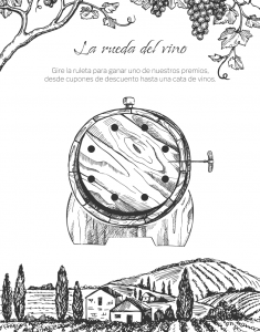 Una rueda de la fortuna con el aspecto de un barril de vino es una divertida forma de animar a las audiencias a interactuar con una marca, sobre todo, si se le ofrecen premios detrás de cada tirada.