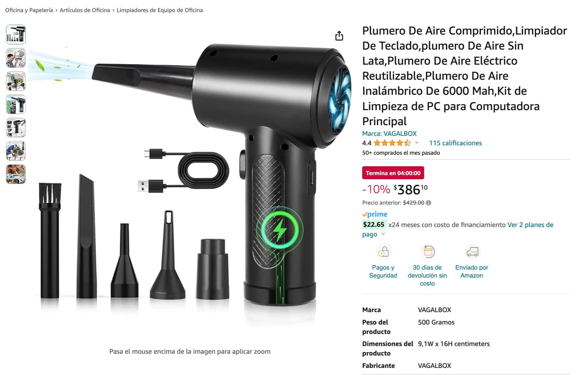 En el empaque vienen 4 boquillas y 1 cepillo, perfectos para limpiar todo tipo de superficies y lugares, desde tu computadora y ventiladores hasta teclados, coches y mucho más. Incluye una boquilla fina y larga para acceder a rincones estrechos y zonas de difícil acceso, además de boquillas y cepillos intercambiables que ofrecen mayor comodidad y eficiencia en la limpieza.