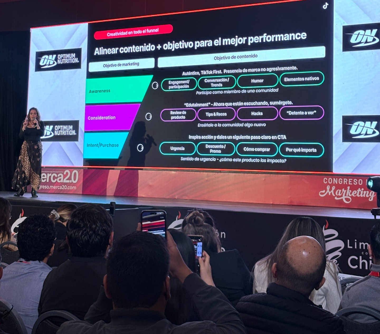 Ante una audiencia llena, la especialista explicó cómo TikTok transformó el funnel tradicional y lo convirtió en un circuito de conversión continuo donde el contenido impulsa decisiones reales.