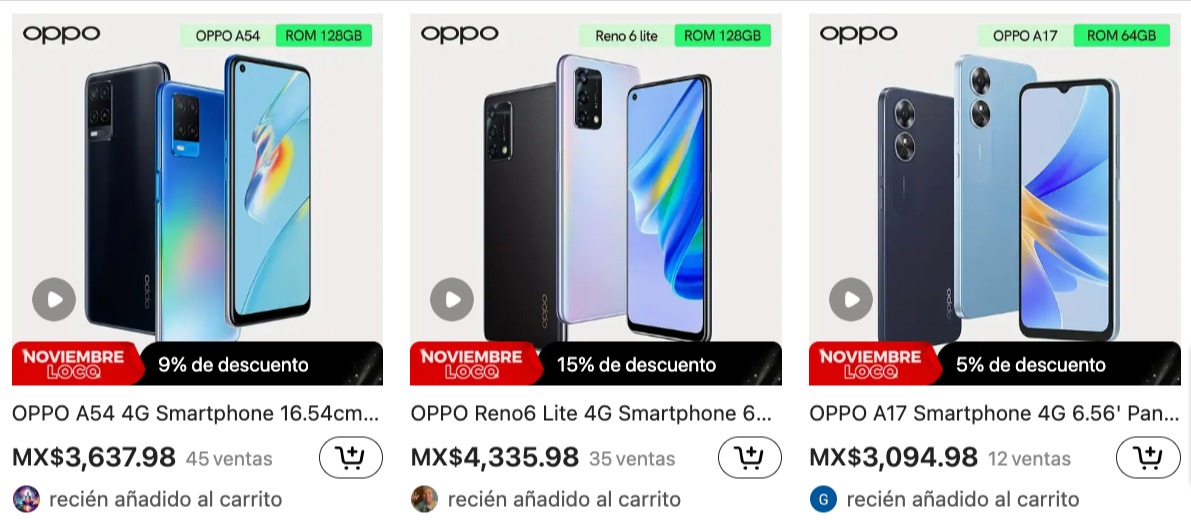 Por ejemplo, el Oppo Reno 6 Lite 4G tiene un costo de 4,335 pesos; en México, en establecimientos como Bodega Aurrerá, este celular cuesta 5,490 pesos.