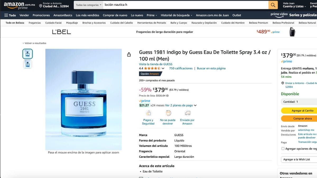 A continuación, te daremos todos los detalles sobre la fragancia Guess 1981 Indigo para que la adquieras de forma rápida en Amazon.