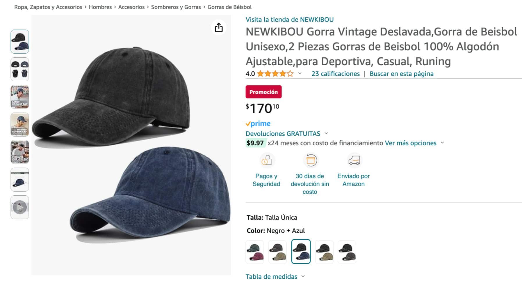 Aprovecha esta oportunidad única y adquiere el pack de dos gorras NEWKIBOU con una promoción de 170 pesos en Amazon. Además, disfruta de devoluciones gratuitas y la opción de financiar tu compra con pagos mensuales. ¡No dejes pasar esta oportunidad para renovar tu colección con estilo y comodidad!