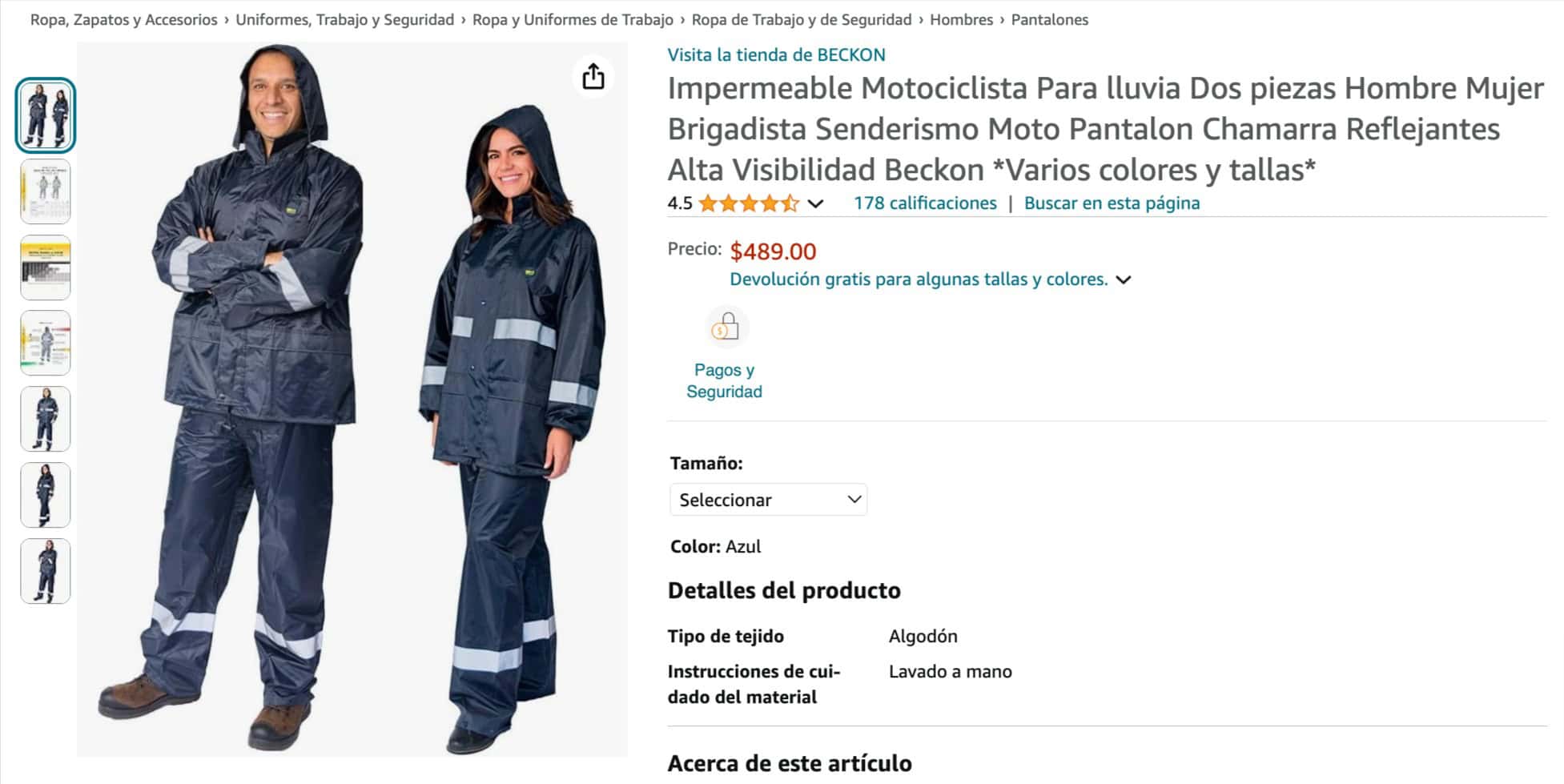 El Impermeable Motociclista Beckon es una opción atractiva para quienes buscan un traje impermeable de dos piezas confiable y funcional, ideal para motociclistas en condiciones de lluvia.