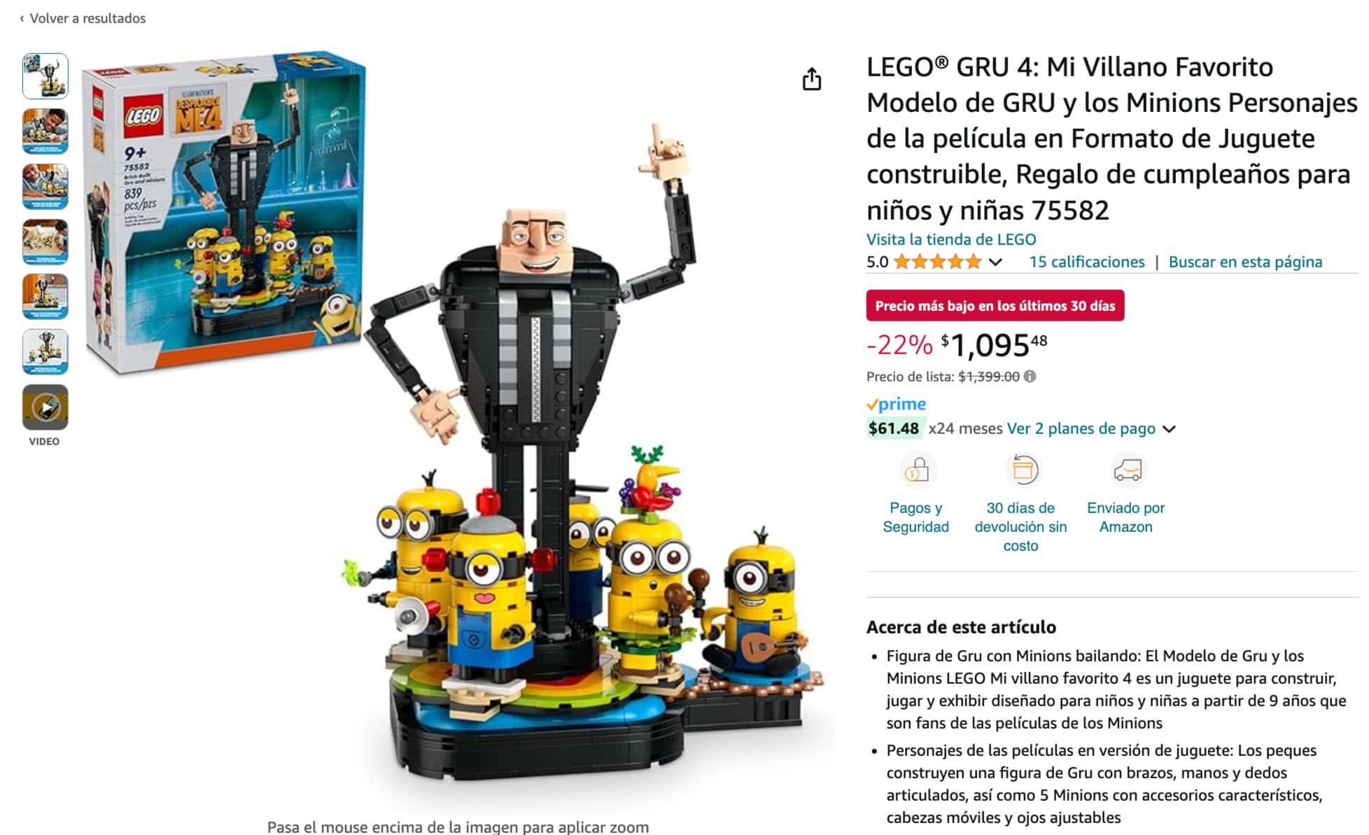 Construye tu propio mundo de Mi Villano Favorito 4 con este set de LEGO. El set incluye figuras de Gru con los Minions Kevin, Stuart, Bob y Otto.