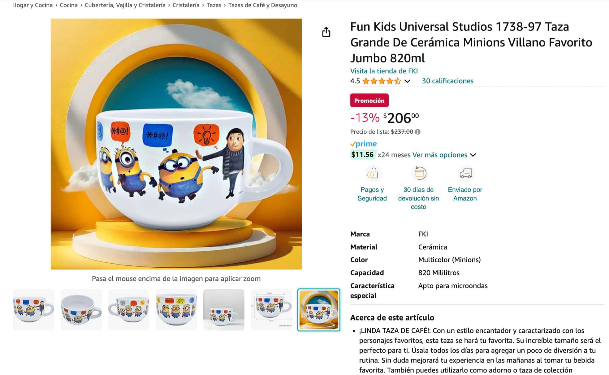 ¡Disfruta de tu bebida favorita con estilo con esta taza jumbo de los Minions! La taza tiene una capacidad de 820 ml y presenta un diseño divertido y colorido con los Minions de Mi Villano Favorito 4. Es perfecta para el desayuno, el café o cualquier otra bebida.