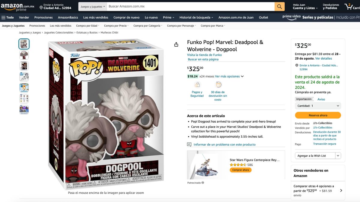 Este 24 de julio se estrena la película Deadpool & Wolverine en México, y uno de los personajes que más ha llamado la atención es Dogpool, por lo que Amazon lo tiene a un precio que no lo vas a creer.