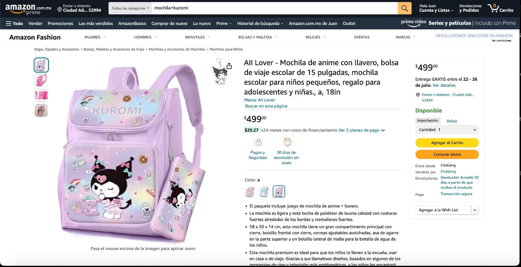 Por ello, te dejaremos algunas opciones de las mochilas Kuromi que tiene Amazon en menos de 500 pesos.