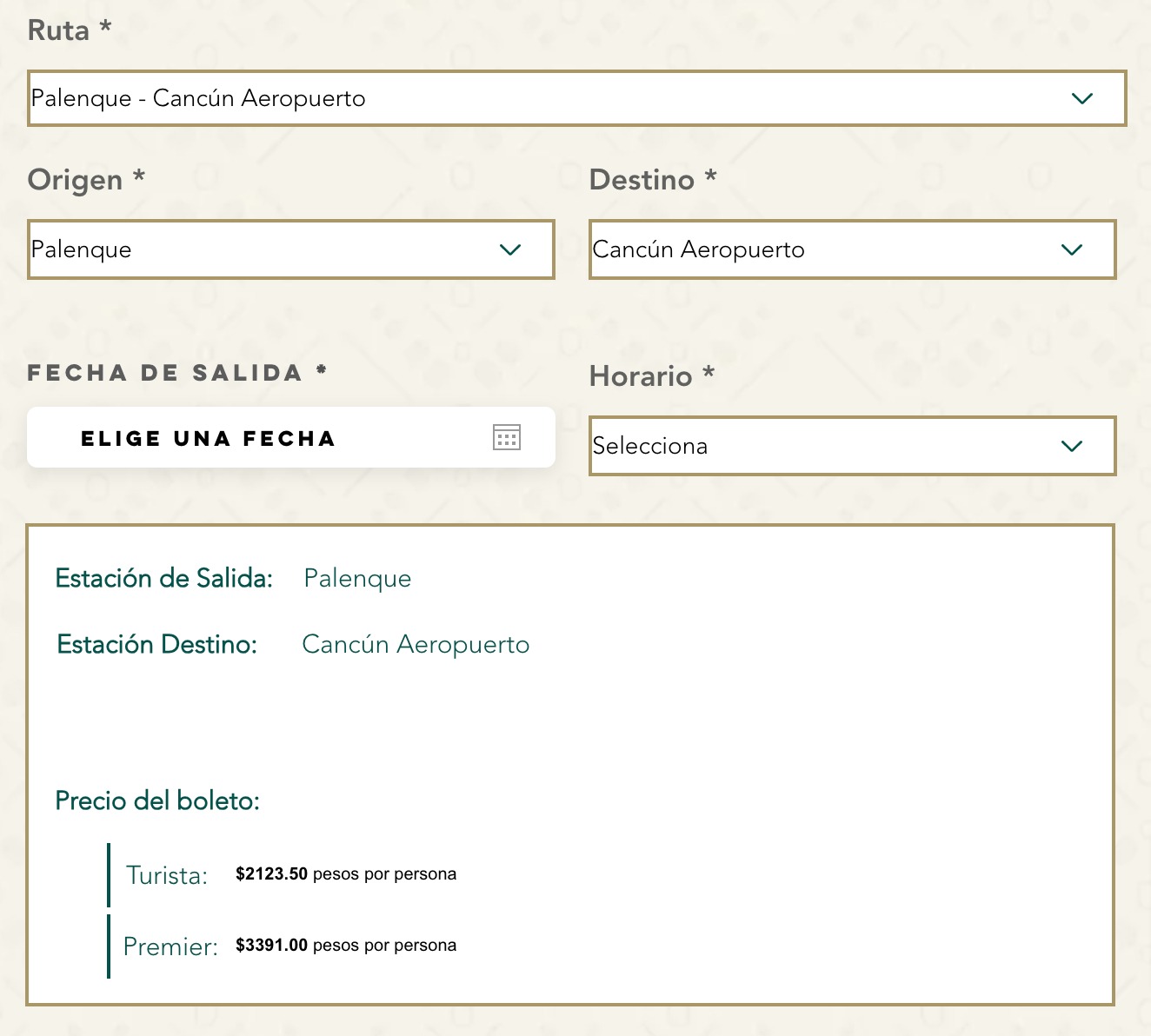 Precio del boleto de Palenque a Escárcega